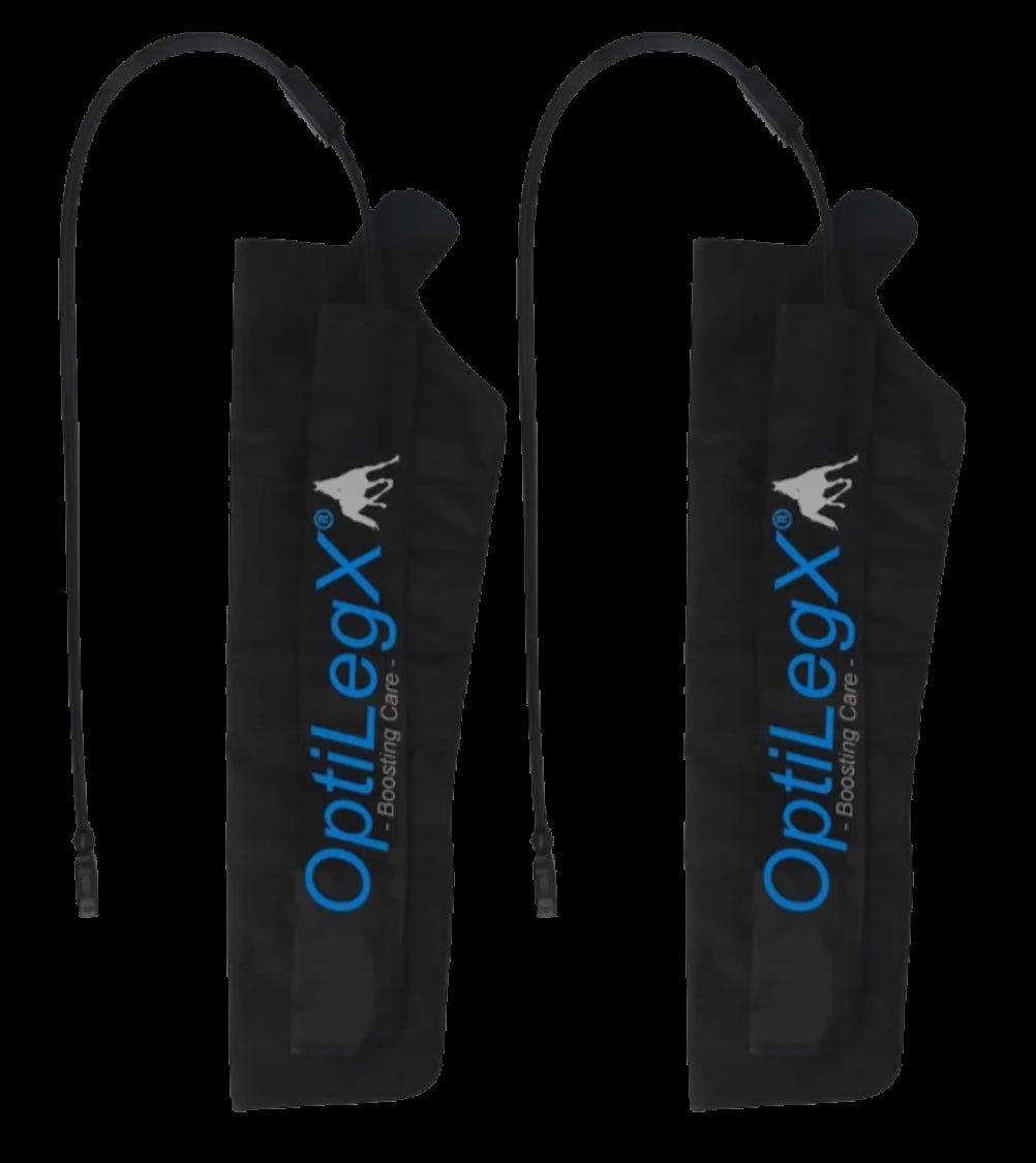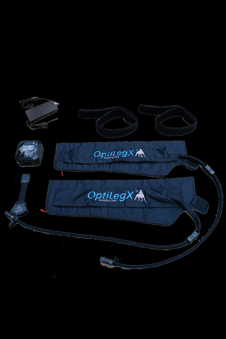 The OptiLegX® is a compression system for horses and specially designed to improve circulation in the legs. This advanced device uses compression technology, where controlled pressure is applied to specific parts of the legs, This leads to a significant improvement in the blood flow to the leg. The Equiflow removes waste products faster, reduces swelling and accelerates recovery processes. This makes the system very suitable for use where recovery and a fast recovery are of great importance. It offers an effective solution for promoting healthy legs and optimal performance. Compression systems are already used by top athletes in endurance sports and scientific substantiation has been published for this. Now the system is also available for horses.